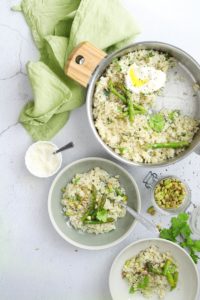 • Soupe de légumes, oeuf mollet et oignons frits